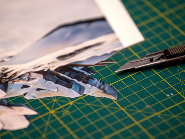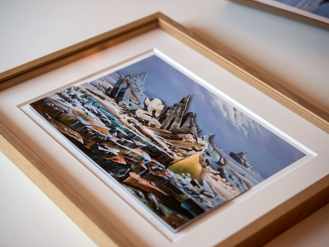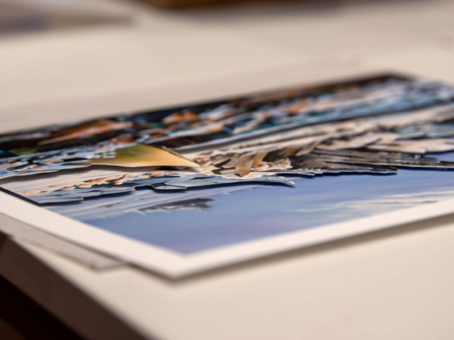 Das Original Werk ist eine mehrteilige Installation aus Aluminium-Verbundplatten. Diesen Effekt greift der Druck auf, in dem mehrere Ebenen von Kunstdrucken einzeln ausgeschnitten und verklebt wurden. Der Druck ist nur mit dem Objektrahmen zu erwerben.